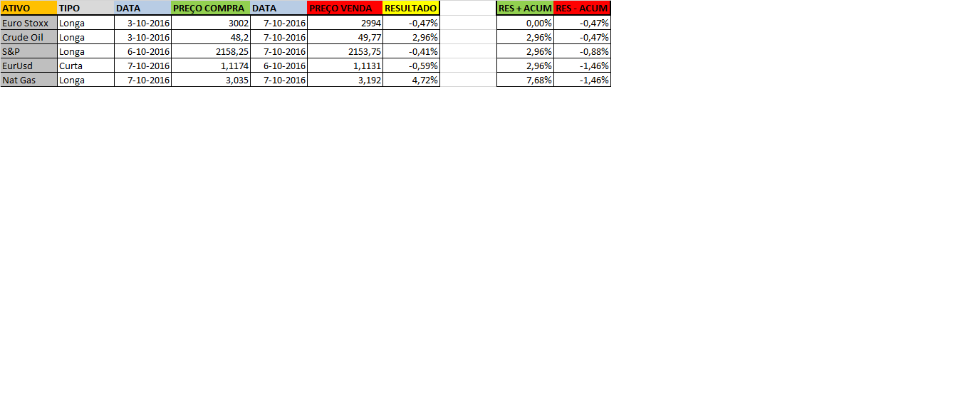 Já agora deixo apenas um pequeno quadro resumo semanal dos negócios sugeridos, que servirá apenas de controlo para ir verificando a eficácia deste conjunto de sistemas “Molotov”.