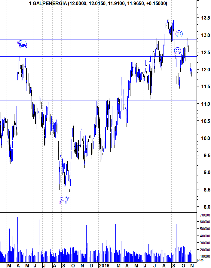 Tal como frisei no último "Discos Pedidos" que fiz sobre a Galp, depois de ter estado de fato de touro vestido durante muito tempo, despi-o por ver os primeiros sinais de fraqueza da acção. Ainda não é o suficiente para vestir o fato de urso (apenas se quebrar o suporte dos 11 euros), mas continuo a ver sinais de fraqueza que anteriormente nao via. Apenas voltarei a mostrar-me optimista em relação à acção se voltar a romper, consistentemente, a resistência dos 12,85 euros.