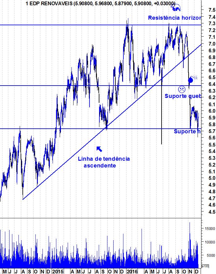 Tecnicamente, depois de ter quebrado a LT ascendente e o importante suporte entre os 6,35 e os 6,4 deixei de estar optimista na acção. Penso que os gráficos são claros.