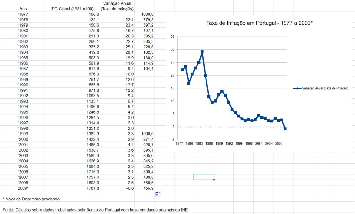 Se a minha avó me desse no natal de 1977, 1000 escudos (mil), e eu poupadinho guardasse numa caixa ao fim de 10 anos, esses mil escudos teriam perdido