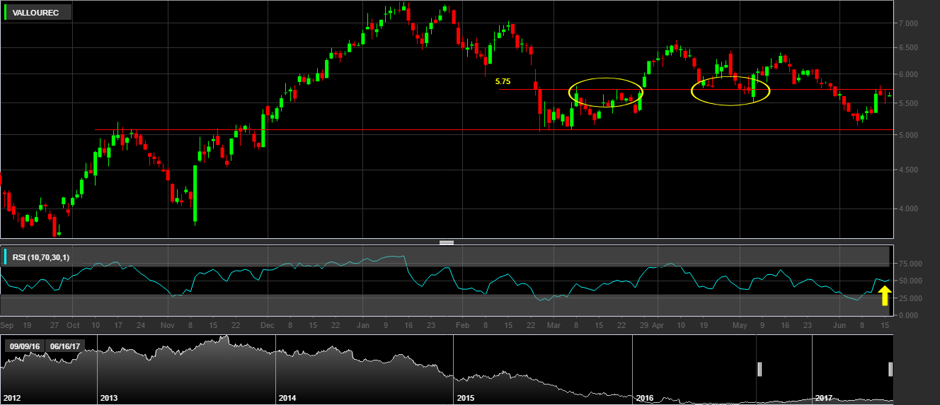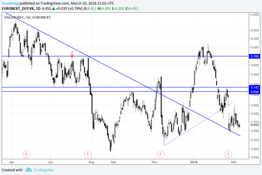 Resistência de curto prazo nos 5,80 e ltd. Tendência de médio prazo descendente com resistência pelos 6,50.