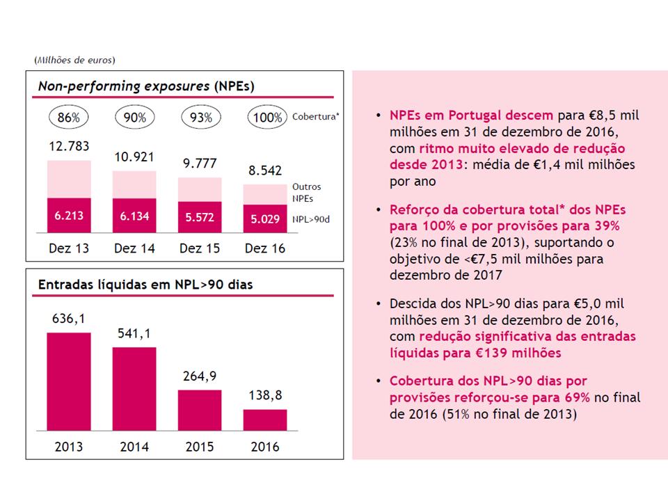 Quanto às imparidades, basta olhar à redução de NPEs e respectiva cobertura para perceber que a pior parte já foi feita.