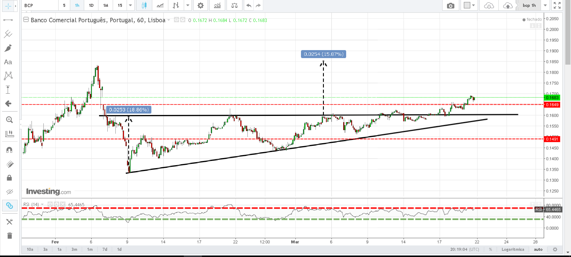 Continua no diario a recuperar e quase a fazer um martelo jeitoso convinha fechar acima dos 0.16.65 para ficar optima..