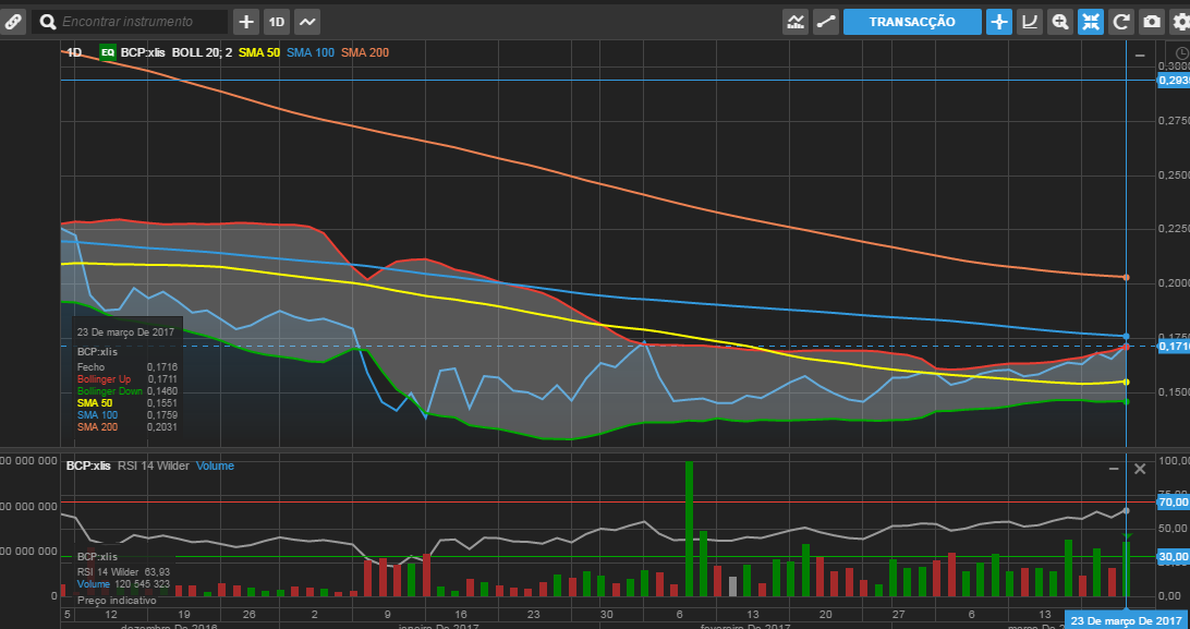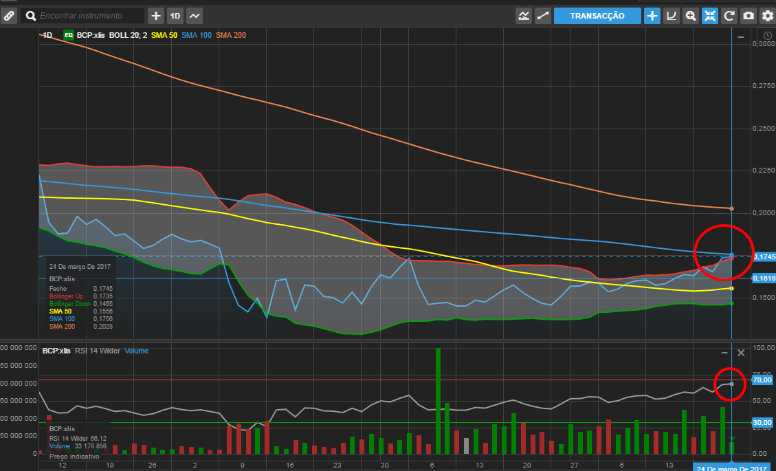 rsi quase nos 68...nos ultimos tempos o BCP reagia em baixa nesses valores.