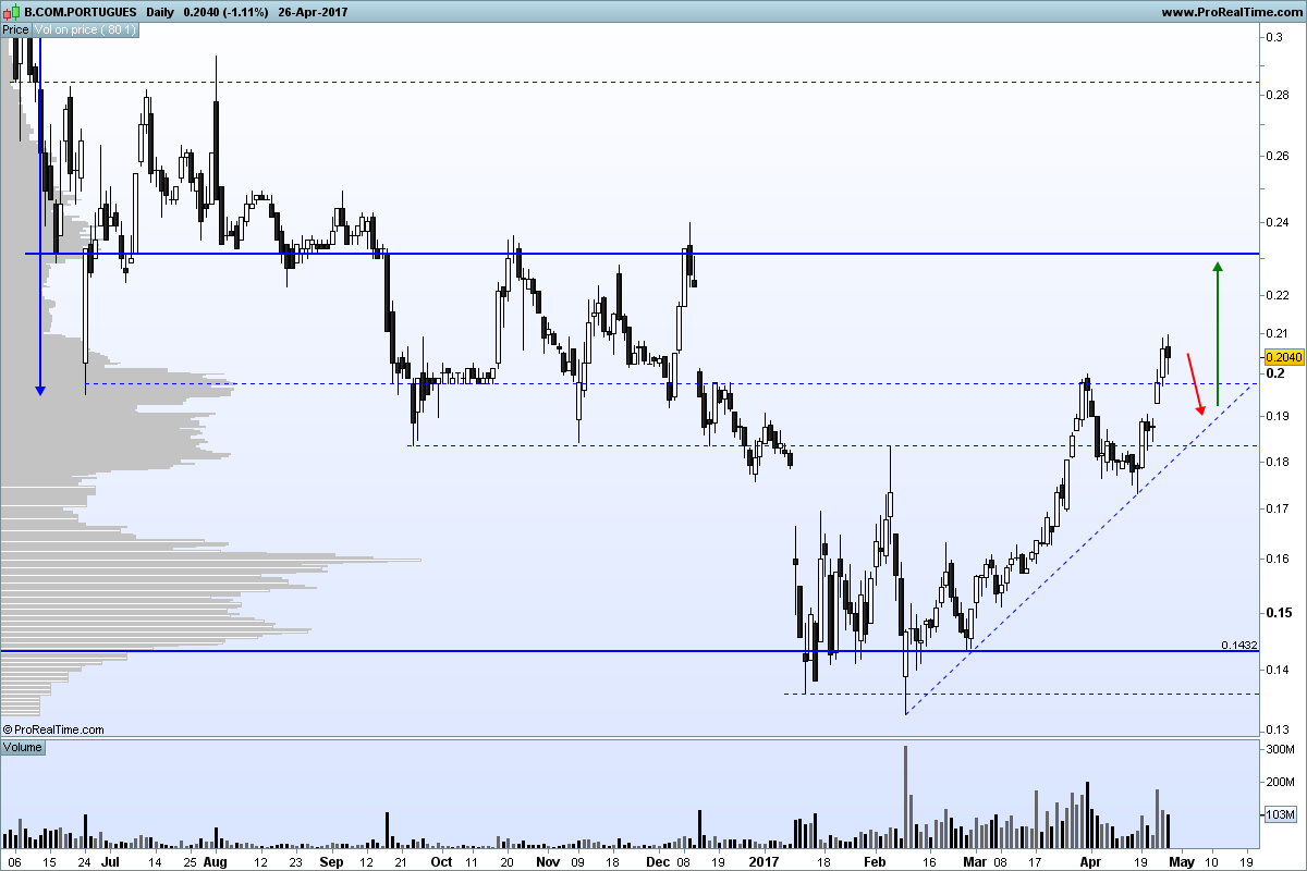 Meus caros, nem por um motivo bem pelo outro, ou se quiserem, pelos dois. Subiu porque os acionistas assim entenderam, a nível técnico, foi ligeiramente abaixo dos 0,20€, no diário, mas para já este valor, que agora se está a tornar suporte, segurou nela.