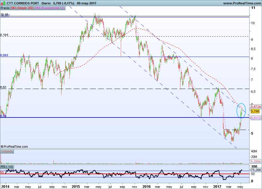 Sim, mesmo essa diagonal vai ser difícil passar no curto prazo. Os CTT descontado o dividendo ficariam abaixo do preço da OPV! E com o mercado a subir...