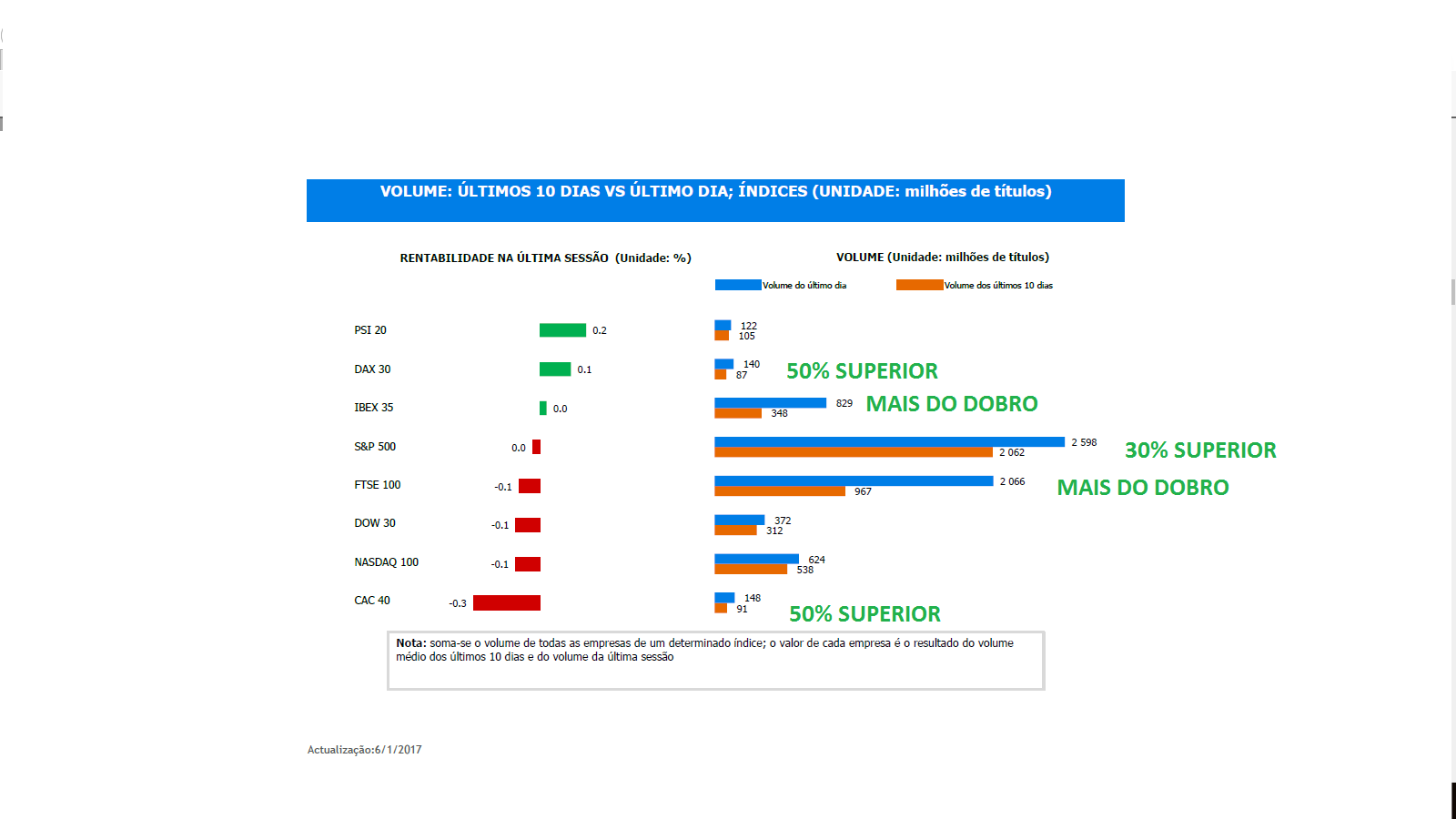 O Volume nas principais praças mundiais foi ontem estratosférico