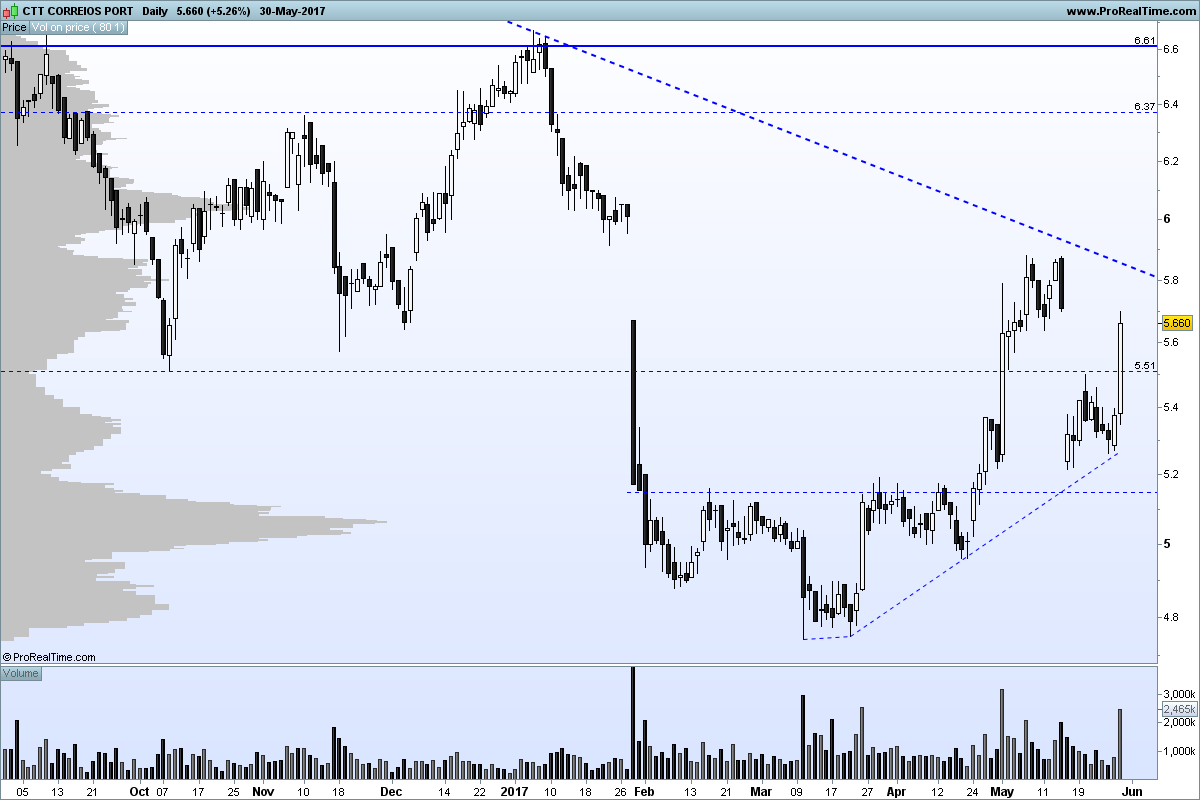Poderei voltar a reentrar se esta cotação voltar aos 5,3€, o que não é de todo impossível. Por outro lado, também é possível que esta cotação, se tiver mais dias como o de hoje, feche o GAP do inicio do ano, escalando até aos 6€.