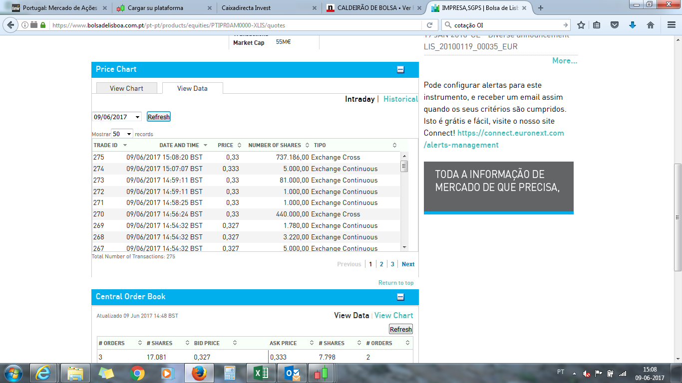 Depois de subir 90% a 95% .. reforços durante a tarde ... todos a 0,33. Leituras .?