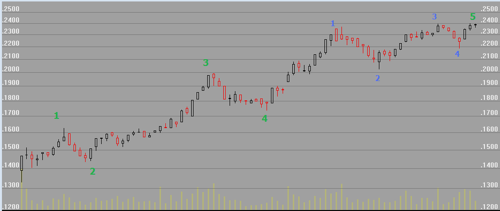 Se pretendes contar ondas de Elliot deverias rever os principios das ondas(a onda 5 não pode ser a maior do que a 3, como acontece no neste caso).