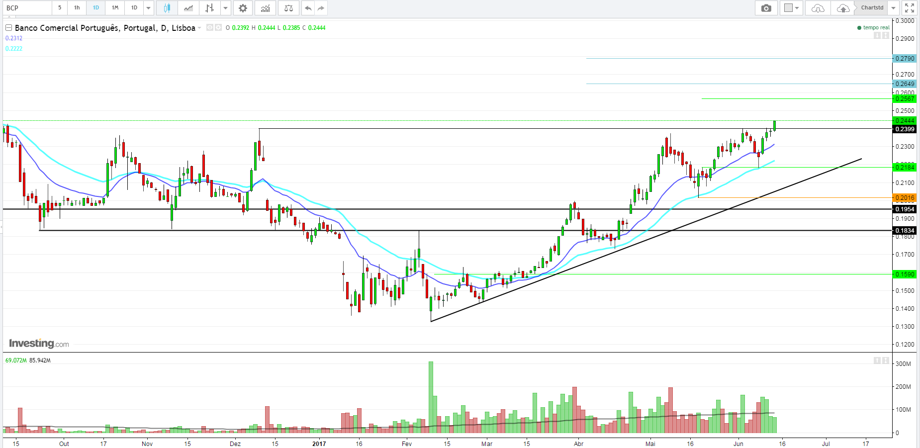 Também sabemos que a aparente quebra da resistencia dos 0,23€-0,24€ te tornaram bullish no BCP.