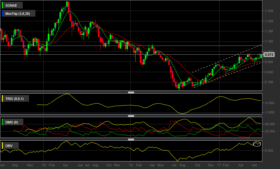 O gráfico da Sonae continua a ter um belíssimo aspecto no médio/longo prazo e o seu "Bull Market" continua intocável. E isso são boas notícias para o PSI dada a elevada correlação entre ambos.
