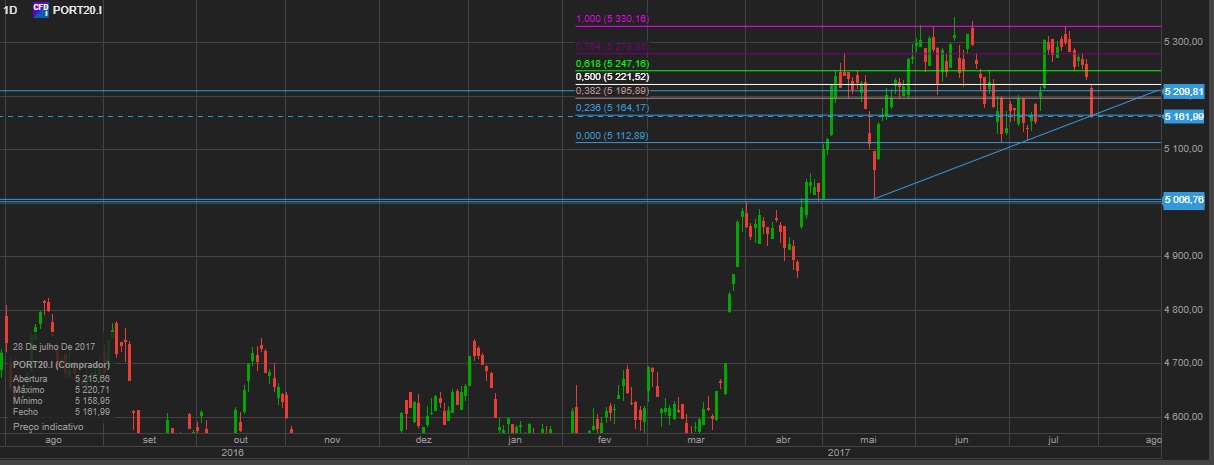 Da minha parte mantenho que um cenário provável seja ver o PSI a marinar por umas semanas ou uns meses nesta faixa ou "flag" dos 5000 aos 5350 pontos, ou seja, a lateralizar.