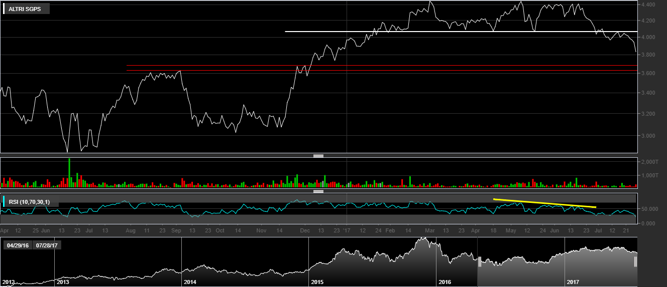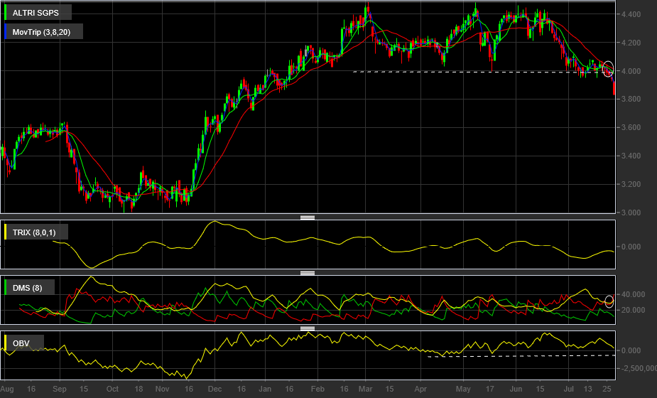 Tendencia descendente nítida e clara quebrado o suporte do 4 euros