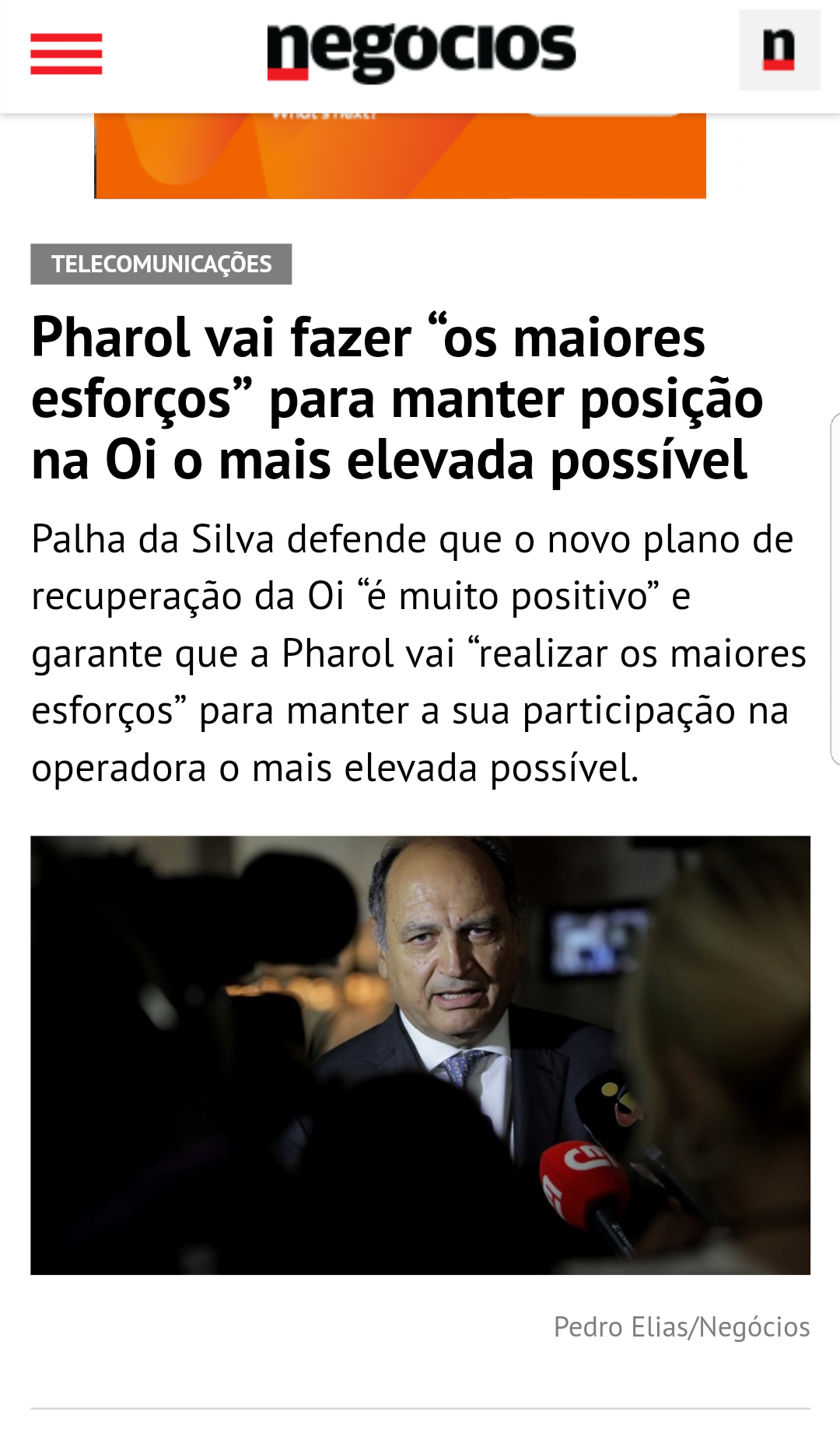 De acordo com Luis Palha da Silva, a Pharol fará esforços para manter sua participação na Oi no maior nível possível após a reestruturação. Atualmente a Pharol possui participação de 25,7% na operadora.