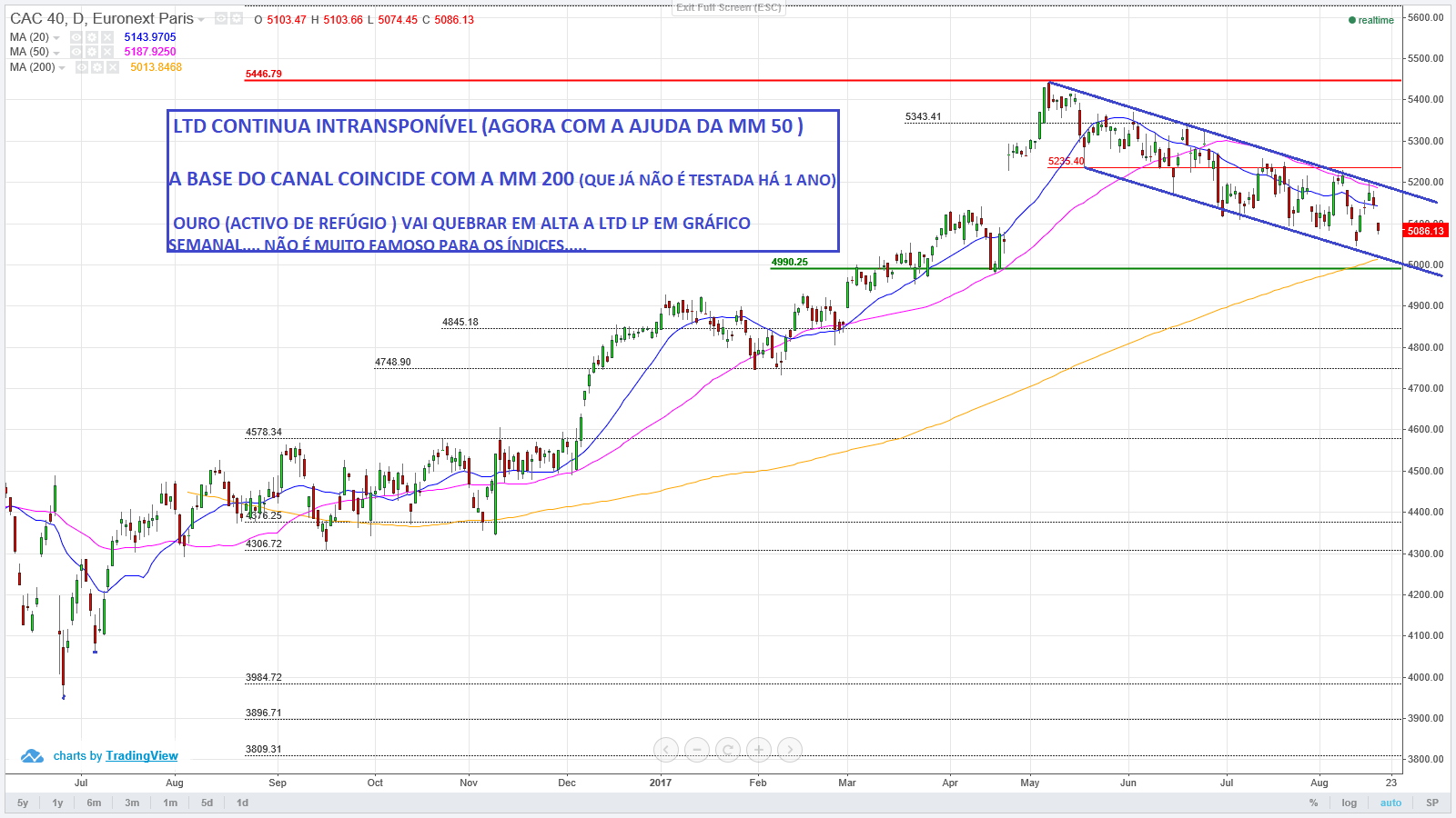 Á semelhança do DAX outro índice na europa cuja tendência e canal descendente são claros e vincados, bem como a evolução da Mm50 .
