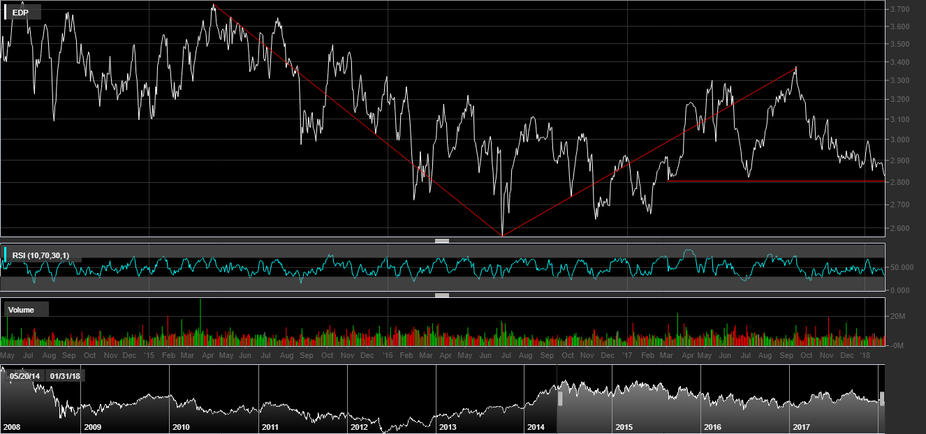 Com o atual estado de retoma económica, a baixa do desemprego, o aumento das exportações, etc, etc, etc, não faz qualquer sentido a cotação atual da EDP tendo com referência o seu histórico.