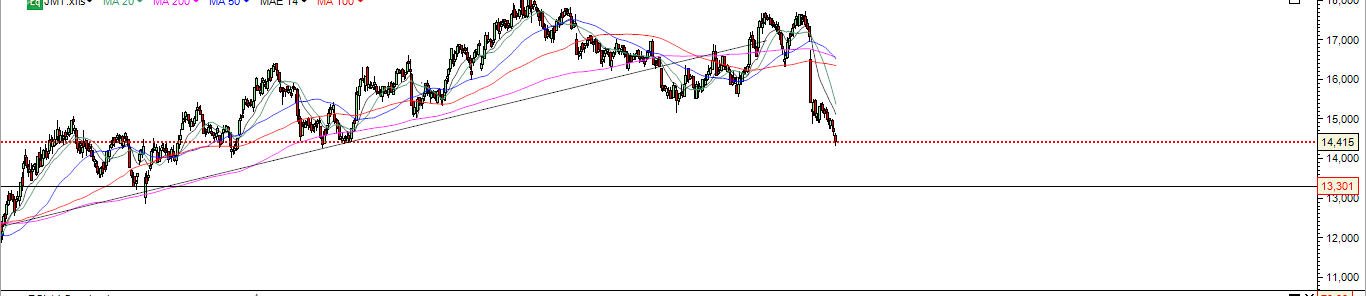 Não sou "expert" em análise técnica mas parece ter atingido o suporte por volta dos 14.93€.