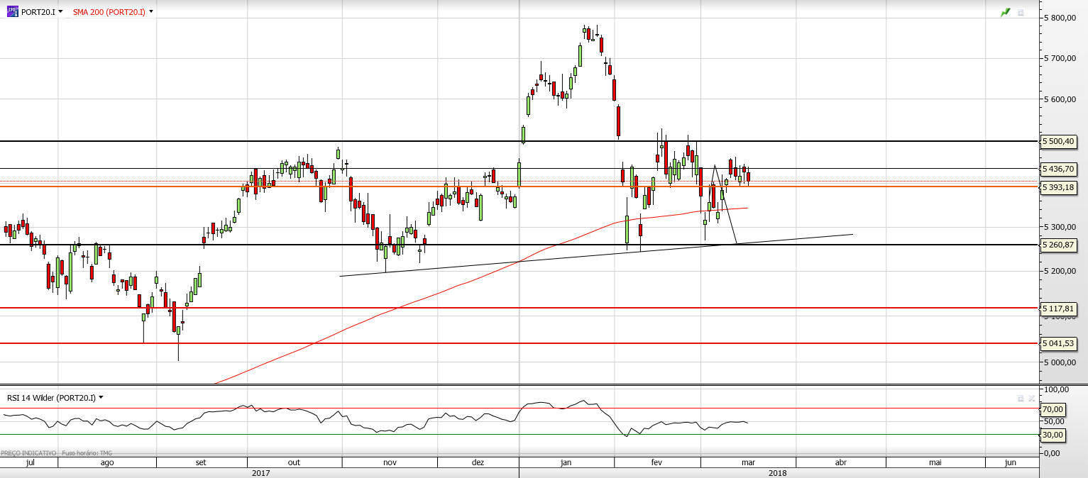 Para não ir á zona dos 5260 é importante aguentar acima deste suporte onde se contra, linha laranja