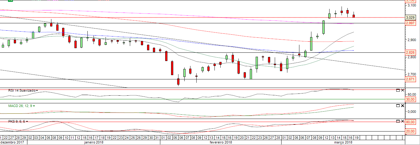 Neste momento os indicadores técnicos estão em níveis elevados apos a forte subida .