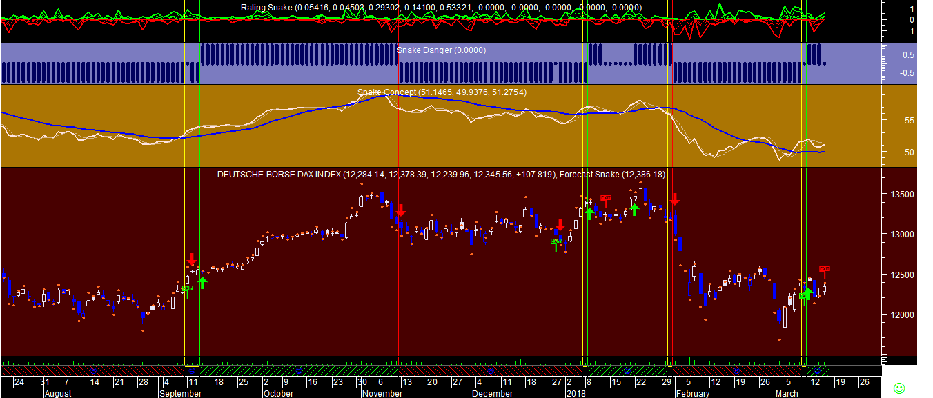 Gráficos de hoje no DAX e na Daimler em sistemas de trading diferentes apresentam uma pequena curiosidade de aparecerem com uns sinais de compra apesar do castigo infligido ao setor acionista, insinuando que a correçäo de curto prazo terá ido um pouco longe de mais. No entanto os sinais de compra säo ainda insuficientes para compensar a negatividade do conjunto dos restantes sistemas que mantêm no geral um a panorâmica pouco risonha.
