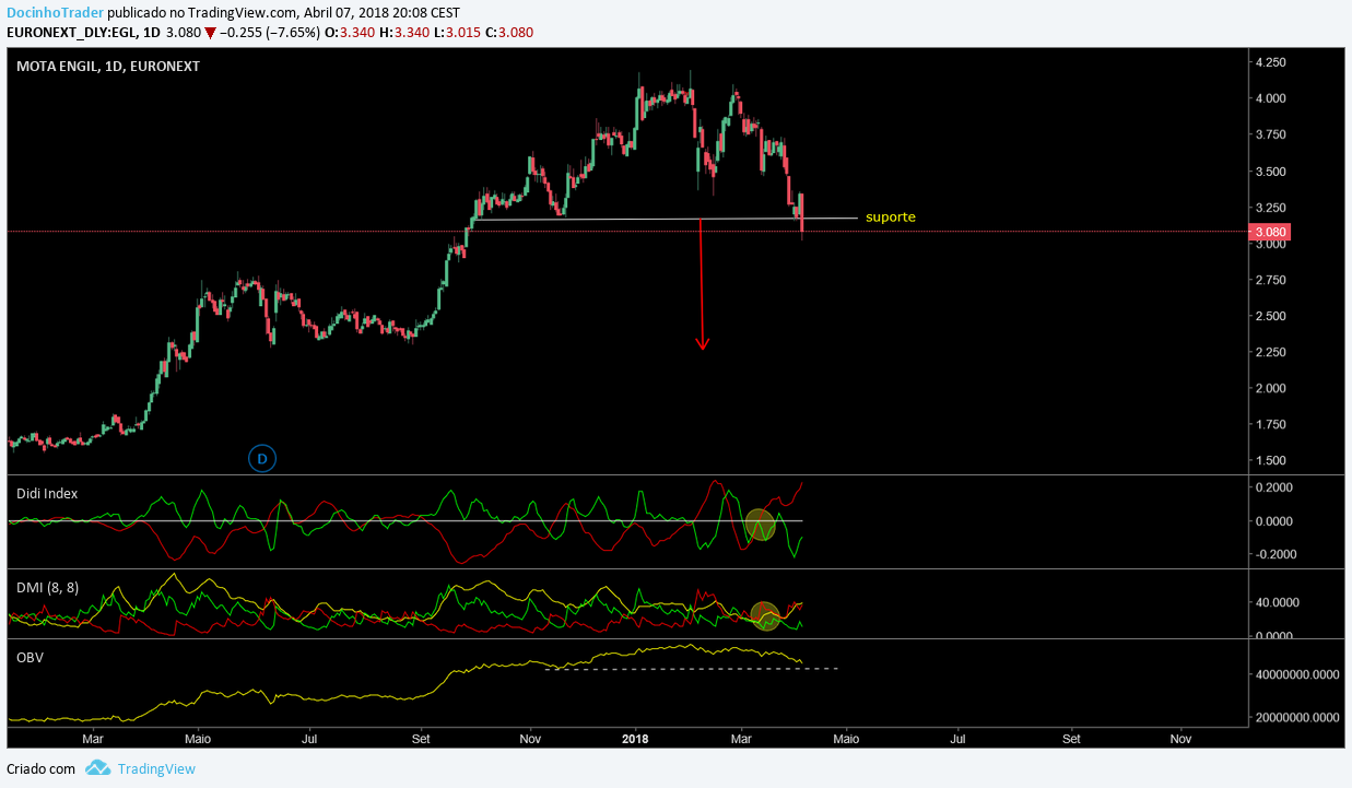 Continuando, a Mota abatendo estes dois máximos relativos pode novamente voltar a ser uma ação ganhadora e partilhar bons ganhos claro. Fica o gráfico.