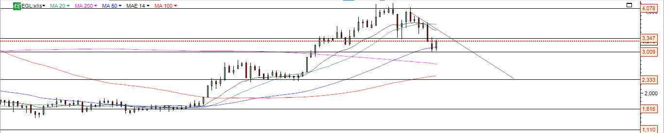 Veremos se consegue no fecho manter-se acima da crucial MM200 nos 3.23 , anterior suporte no gráfico .
