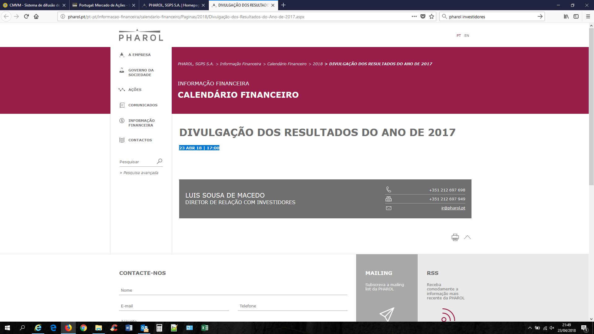 Re: Pharol - Topico geral