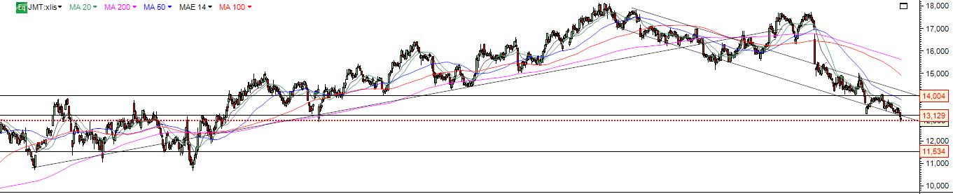 Apenas para esclarecer que a JM não quebrou nada, porque aquela linha ali traçada não existe em termos de análise técnica. Já tinha identificado há algum tempo os sinais de fraqueza na JM, mas tive que vir dizer isto porque quem não percebe nada de AT vê uma linha num gráfico a ser quebrada e até pode pensar que é relevante. E não é porque aquela linha é uma invenção.