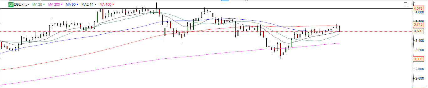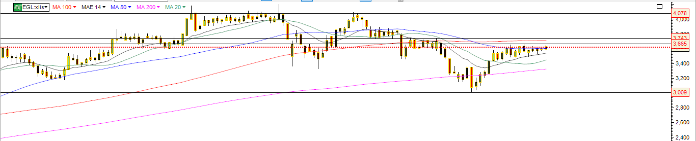 Diria que a zona dos 3.70-3.75 EUR são a resistência, há muitos candles no passado nesta zona (há uma lateralização em Dez/2017 e Março/2018, segundo o gráfico diário).
