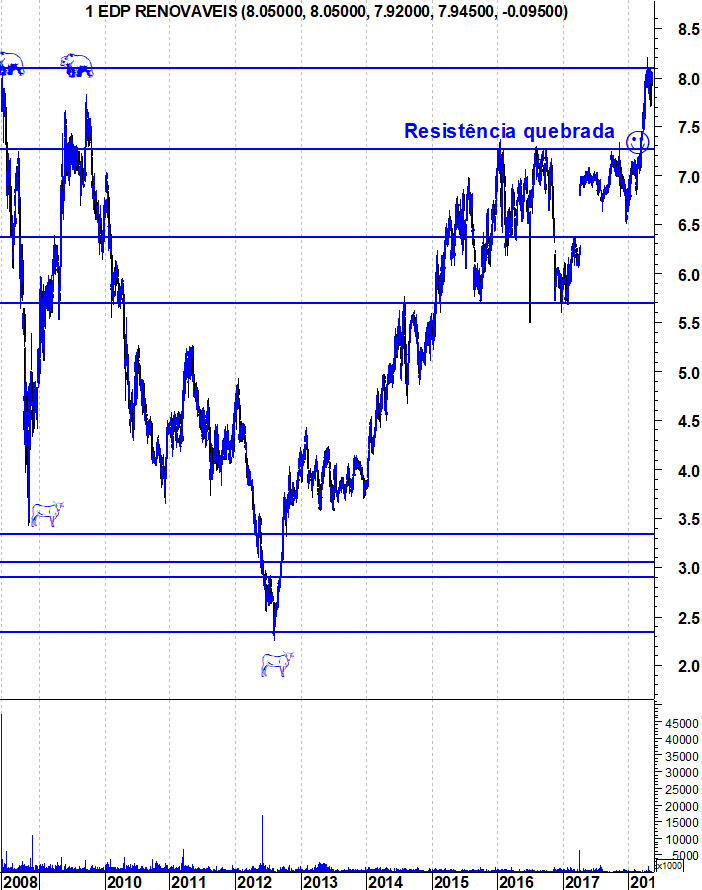 Ficam aqui os gráficos de um "Bull Market" de 6 anos e onde não existem resistências.