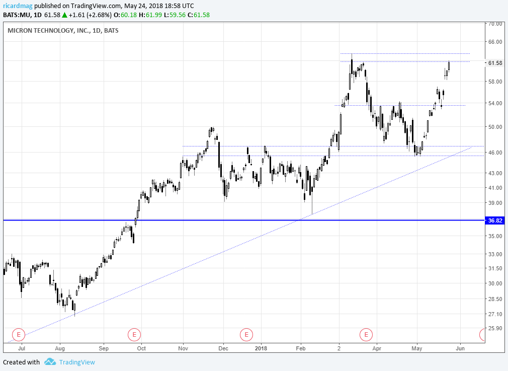 Sai da MU naquele ultimo pullback nos 50 e poucos pois pensei que estava a assistir à inversão tendência, e quis arrecadar os ganhos (tinha MU desde os 30s, com um reforço na quebra dos 50). Claro está que devia ter estado quieto e tê-la mantido mais uns meses.