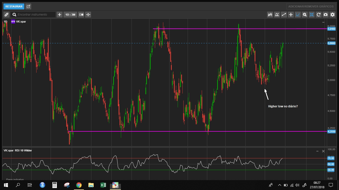 Precisa de um higher low, para reforçar subida? Eu diria que sim. Depois da subida que teve nas últimas semanas, um descanso não ficava mal.