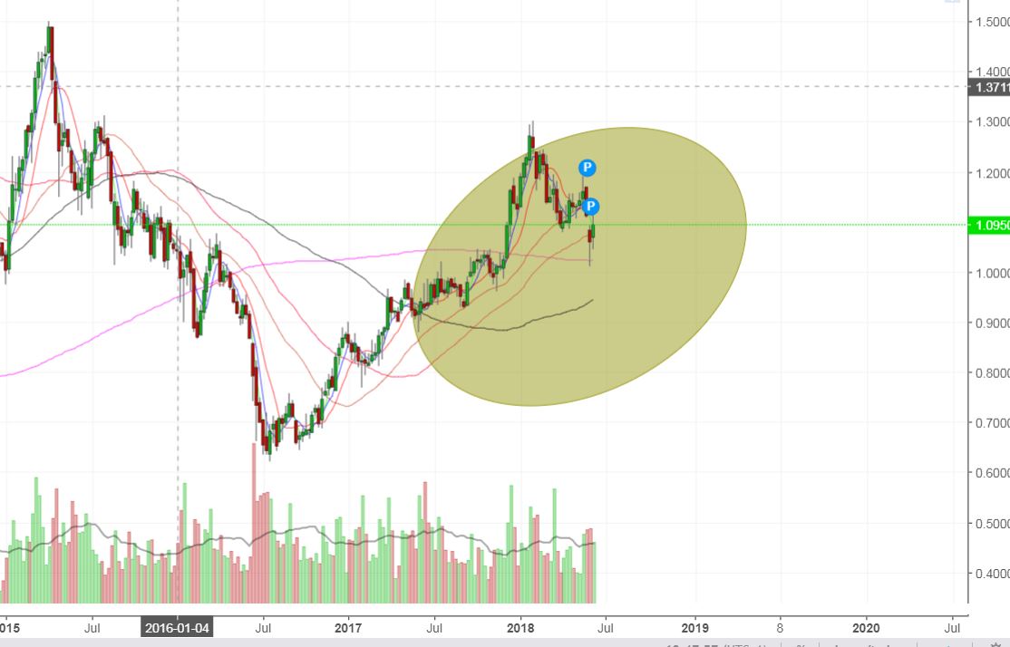 No semanal MA100 vai cruzar MA200 a subir brevemente, tudo aponta para 1,50.