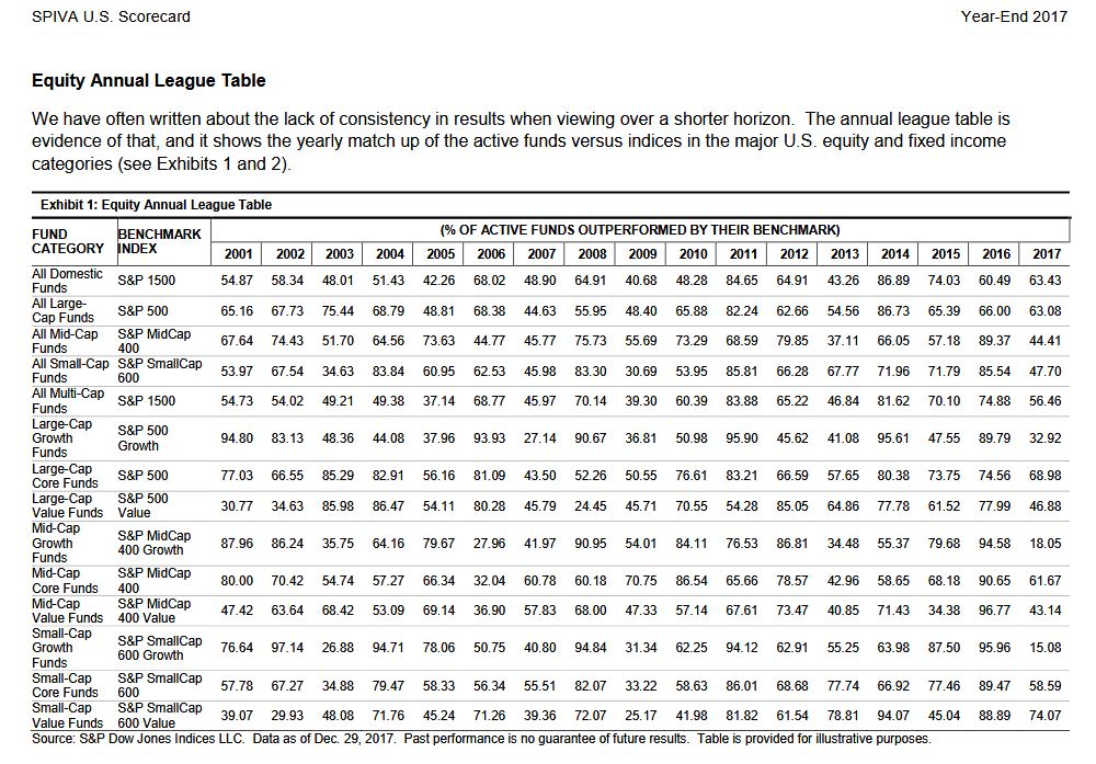S&P Dow Jones Indices Escreveu:S&P Dow Jones Indices has been the de facto scorekeeper of the ongoing active versus passive debate since the first publication of the S&P Indices Versus Active Funds (SPIVA) U.S. Scorecard in 2002.
