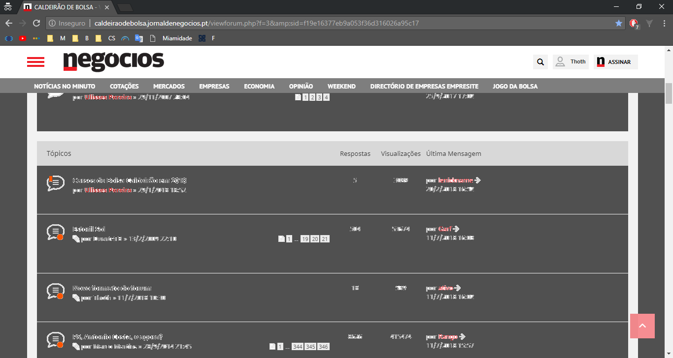 Não devo ter reparado porque nunca vou ao indice, vou direto para o forum geral.