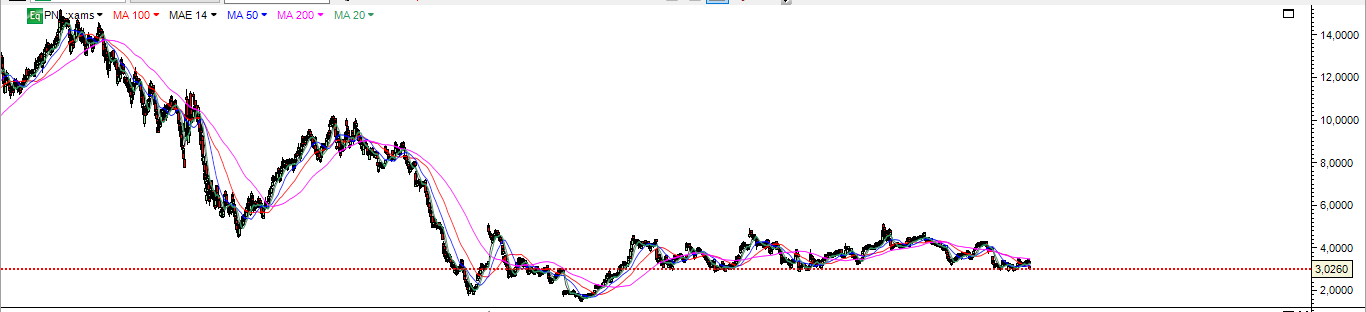 Posso estar a ver mal a coisa, mais o range 2,90-3,00 é um suporte. Que eu saiba a cotada está num Bearmarket há uns aninhos.