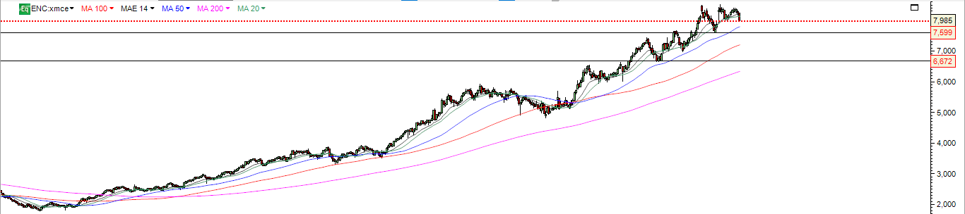 A própria ENCE que tem um gráfico semelhante á altri , pois beneficia da mesma vantagem do preço da pasta , começa a parecer que quer corrigir desta subida vertical excessiva .