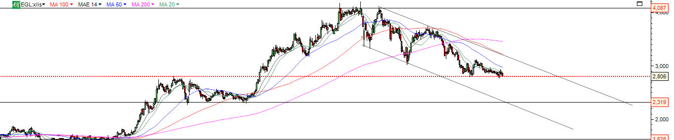 Tenta aqui aguentar o ténue suporte de 2.80 , com fracos fundamentais operacionais desde há 3 anos , o mais provável é continuar a corrigir , tendo um suporte intermedio nos 2.30 euros .
