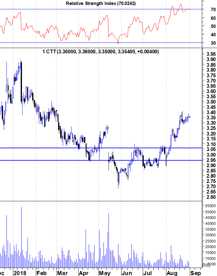 Os CTT tiveram um grande Agosto, quebrando resistências e mostrando força. Se juntarmos à actual cotação, o grande dividendo distribuído em Maio, podemos ter ainda melhor noção de como têm sido fortes os últimos meses nos CTT. Nesta altura, a acção está sobrecomprada, pelo que será difícil no curto prazo esperar grandes arranques, estando vulnerável a correcções. Mas a "big picture" continua com excelente aspecto.