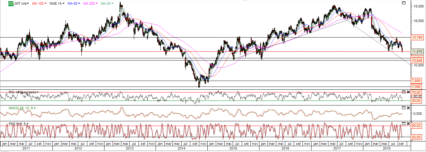 A última vez que a JMT veio aos valores atuais reagiu em alta só parando nos 13€ (aproximadamente).