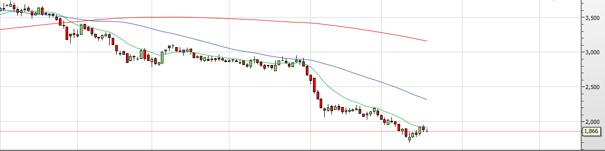 Basta olhar para o gráfico e ver a tendencia de queda consecutiva dos 4 euros até 1.79 euros ( Para já ).