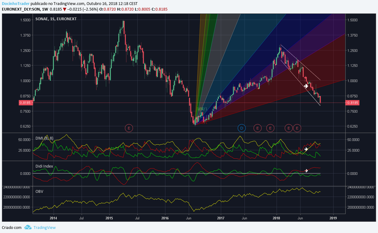 Os 0.80 cts já foram batidos, pelo square gann 9 são um suporte,pelo que pode haver repique.Caso haja rompimento em baixa deste valor o próximo alvo será 0.72cts