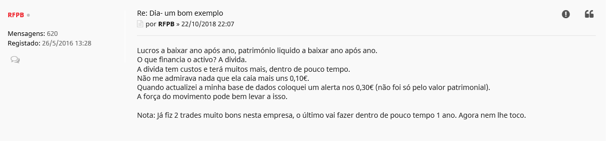 Tu és daqueles sem qualquer coerência , nem sustentabilidade no que afirmas. Quem seguiu os teus posts nos últimos meses dizias que a Mota valia 2, depois 1,5, agora tem que cair mais.