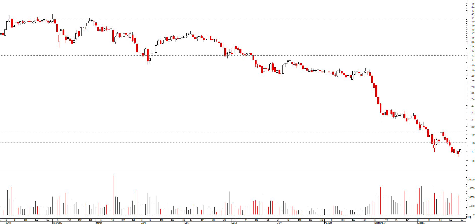 Olhando para o gráfico, no mês passado, parece ter feito um fundo nos €1,68...€1,7 mas também esta com dificuldades em passar os €1,8.