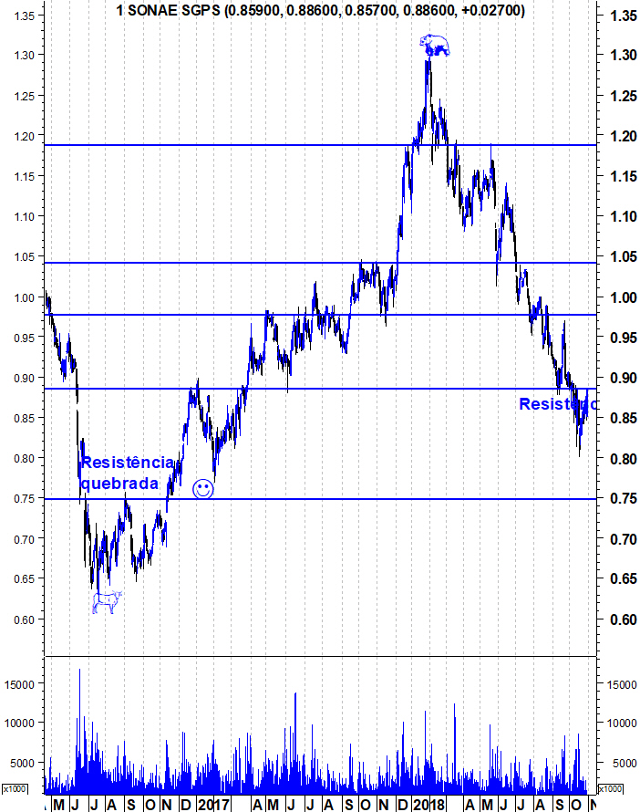 SON para já a aguentar a subida da zona de suporte até á forte resistência da MM50 nos 0.89