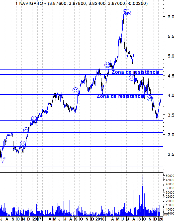 A Navigator em subido bem no último mês mas precisa de ultrapassar a resistência entre os 4,01 e os 4,07 para mostrar que esta subida não é mais do que um mero ressalto.