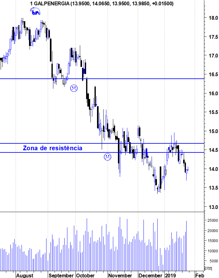 Que sinal seria esse que me faria ficar optimista, de novo, na Galp? A quebra da importante resistência na zona entre os 14,4 e os 14,7 euros. No início do mês passado, a acção teve subidas interessantes mas que terminaram sempre nessa zona. Inclusivamente, em algumas sessões, o título esteve acima dessa resistência mas nunca conseguiu fechar nesses valores, fazendo com quem essas subidas, uma vez mais, fossem apenas meros ressaltos.