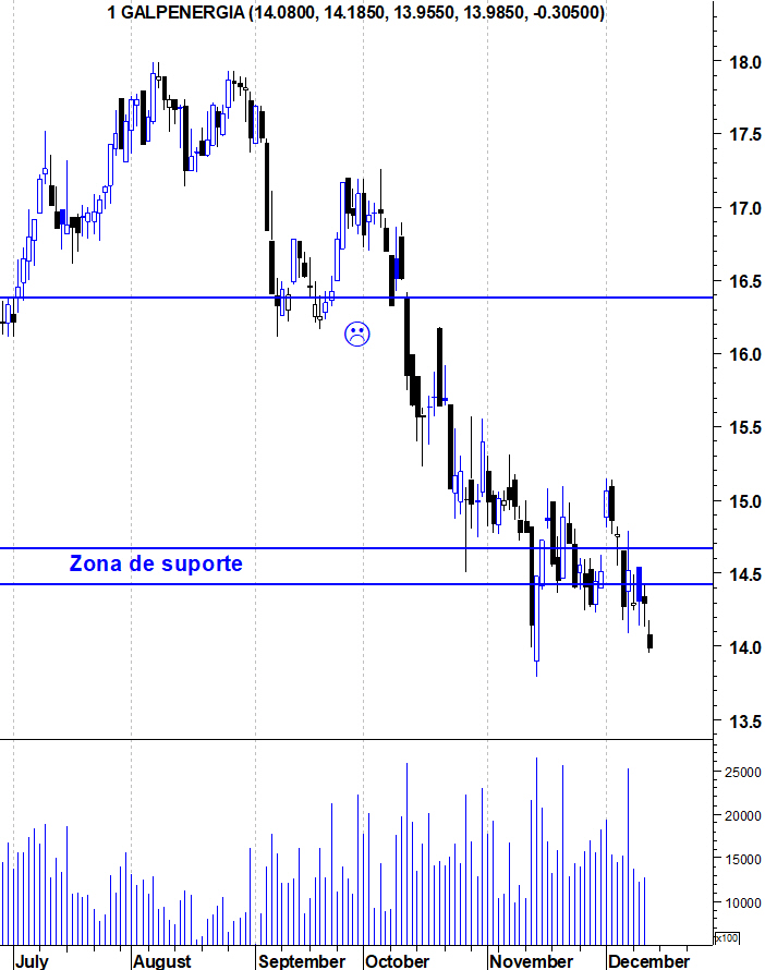 Está a perder importantes zonas de suporte. Primeiro os 16,4 e agora os 14,4.