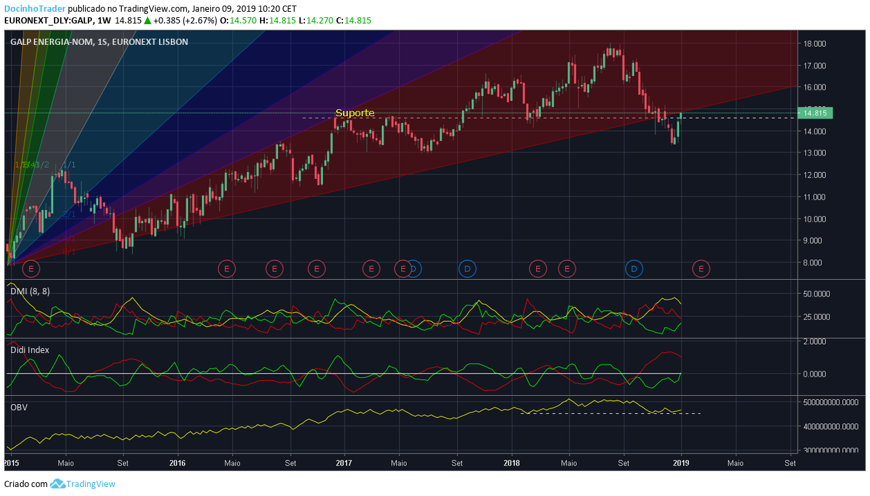 Galp a testar o suporte ,com divergência positiva nos indicadores,o OBV não está com o melhor aspecto mas ainda não perdeu suportes.Indicadores laterais.